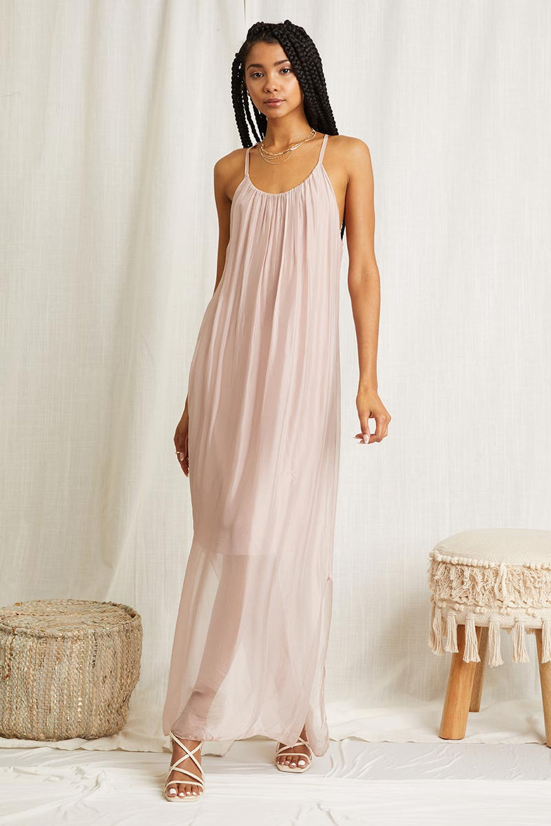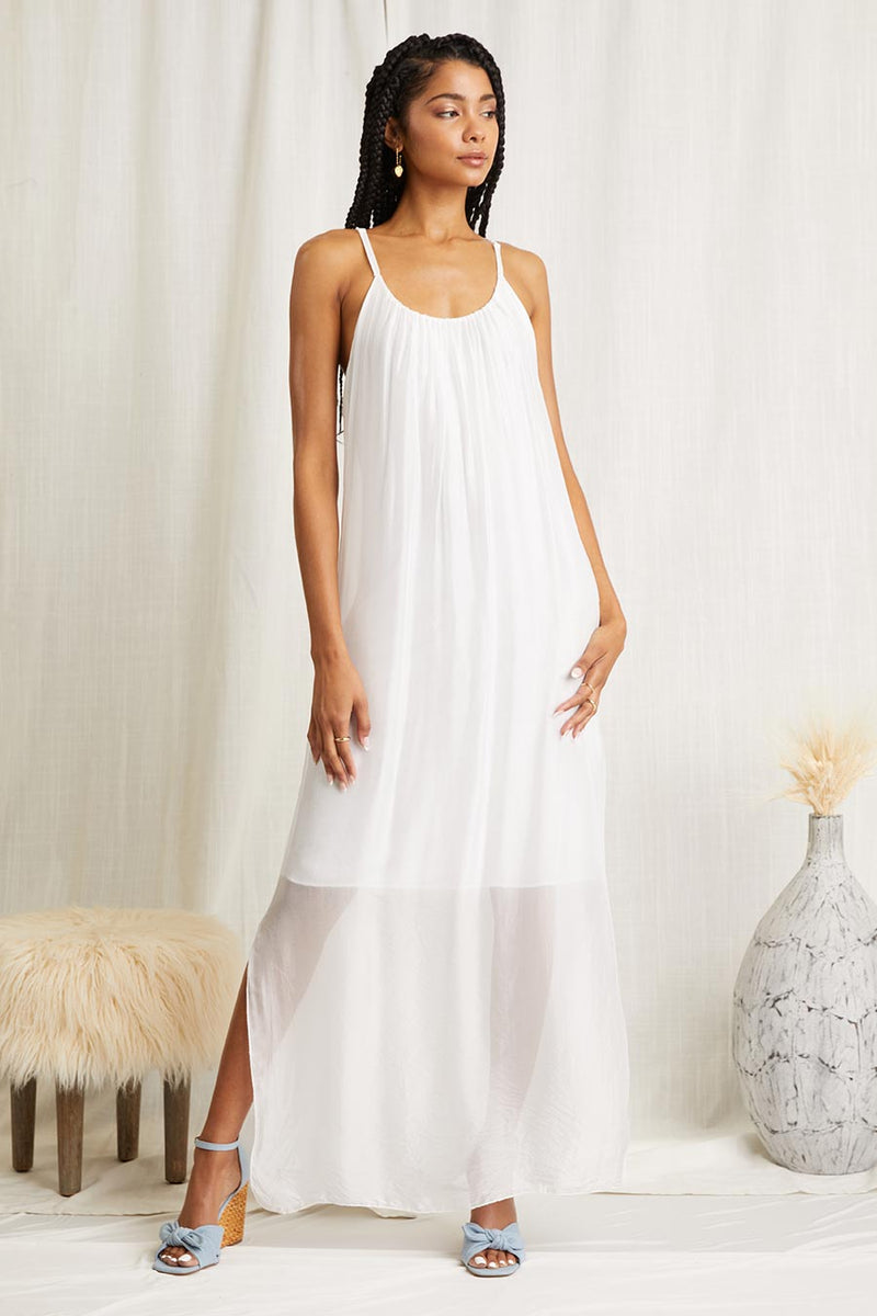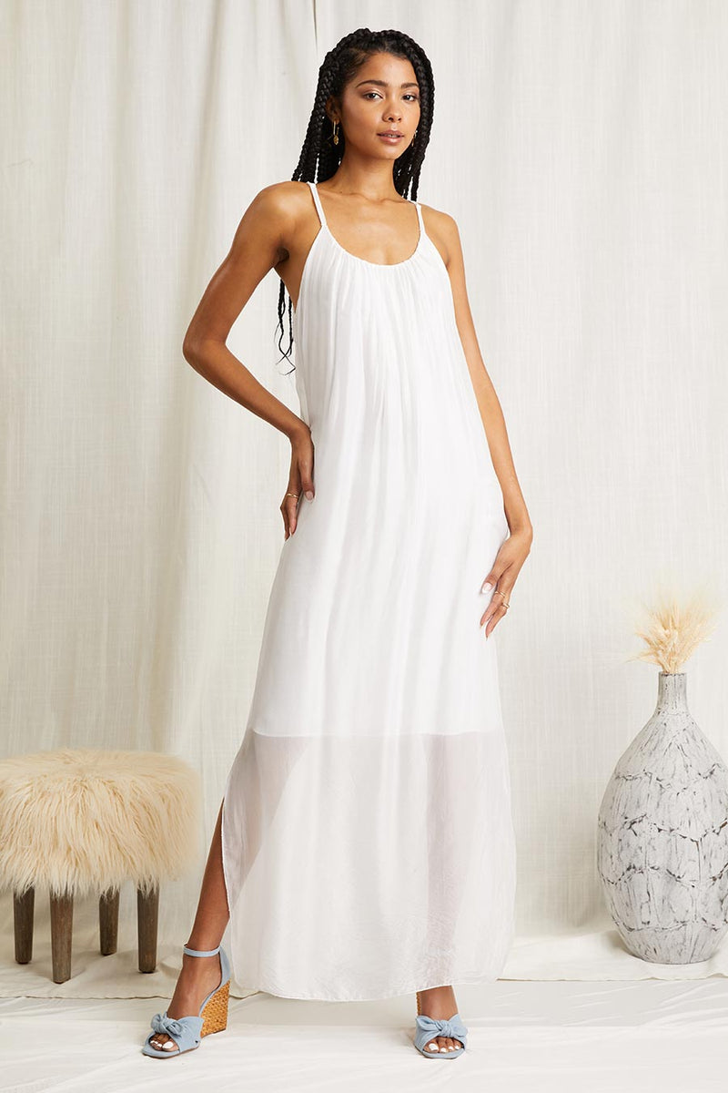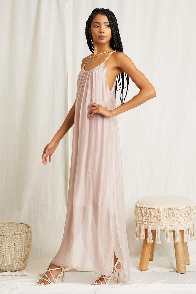 Where comfort and style intersect. Lolita is an airy maxi dress with leg slits on both sides for added room and dimension.